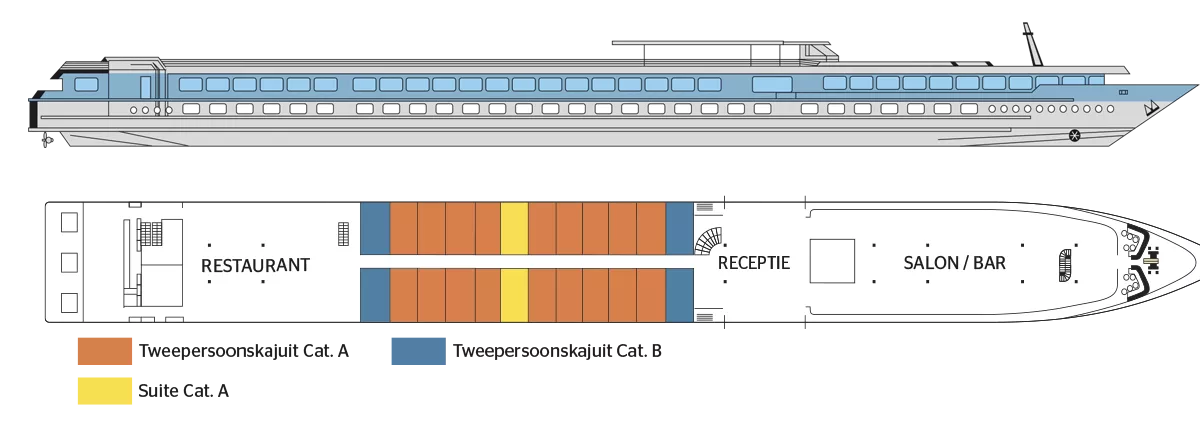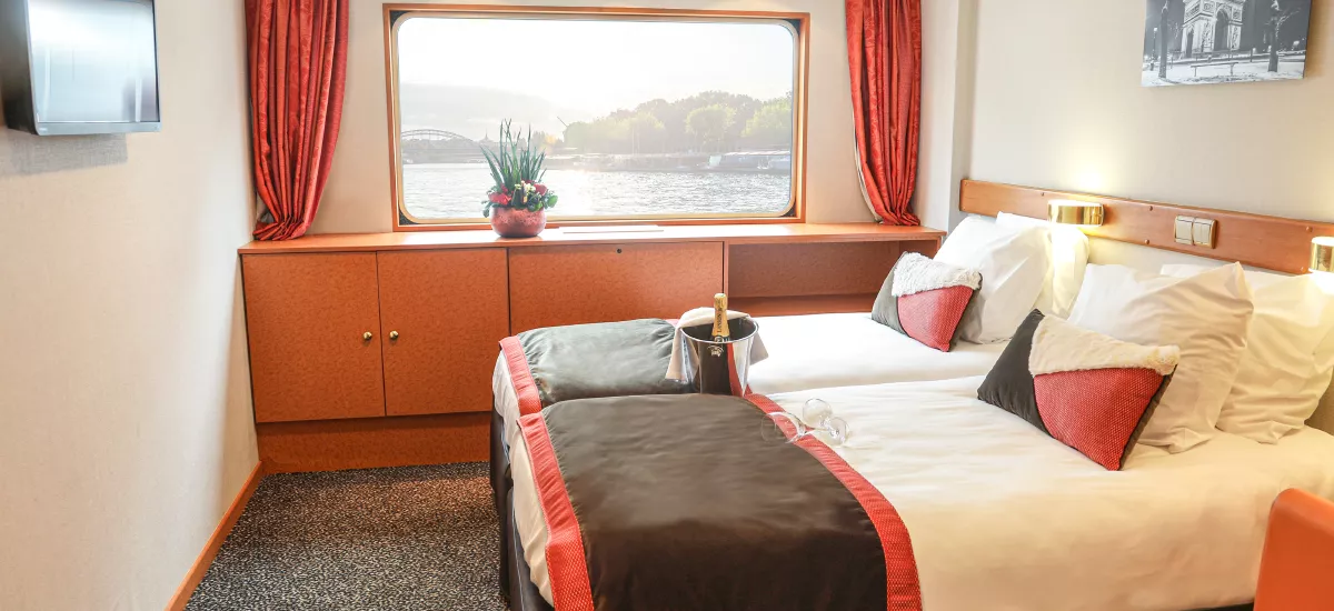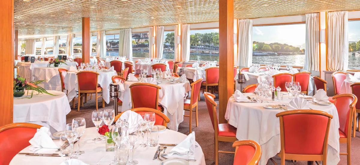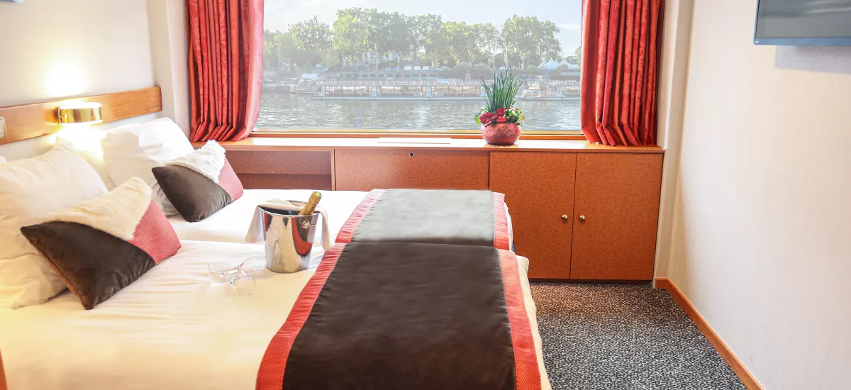 Die SEINE PRINCESS, ein stilvolles Schiff der 4-Anker-Kategorie, heißt Sie mit eleganter Behaglichkeit und französischem Charme willkommen. Die geschmackvoll eingerichteten Kabinen mit einer Größe von 11 bis 14qm (Suiten) bieten einen angenehmen Rückzugsort zum Entspannen. Die Oberdeckkabinen verfügen über ein großes Panoramafenster mit einem Oberlicht, das man aufschieben kann. Die Hauptdeckkabinen verfügen über ein Panoramafenster, das nicht geöffnet werden kann. Alle Kabinen besitzen: TV, Telefon (nur für interne Anrufe, Bad mit Du/WC, Handtücher Safe, Klimaanlage, WiFi. Große Panoramafenster lassen viel Licht herein und mit den Liegestühlen auf dem Sonnendeck eröffnen sich wunderbare Ausblicke auf die vorbeiziehende Flusslandschaft. Kulinarisch verwöhnt das Restaurant auf dem Oberdeck mit hervorragender französischer Küche und einem wunderschönen Panoramablick. Der Salon mit Bar und Tanzfläche lädt zu geselligen Stunden, entspannten Abenden und stimmungsvollen Momenten an Bord ein – perfekt, um die Reise in vollen Zügen zu genießen.