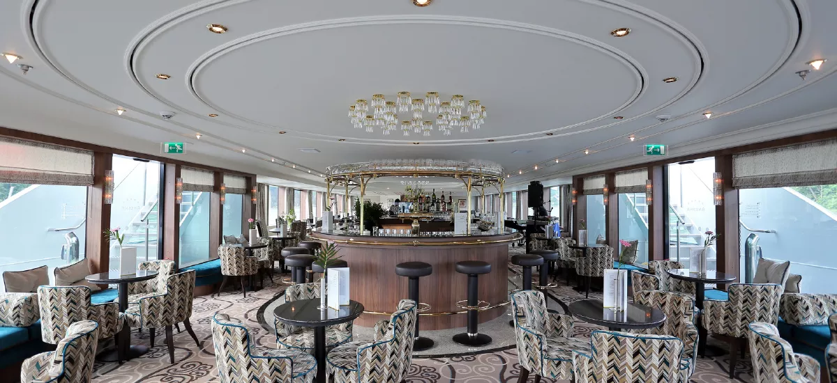 Elegante Räumlichkeiten auf 4 Passagierdecks verteilt. Stilvoll eingerichtete Panorama-Lounge mit Bar, Panorama-Restaurant ”Vier Jahreszeiten“, elegante Heckbar mit Außenterrasse, je nach Route auch mit à la carte-Restaurant. Atrium-Lobby mit Rezeption, Lift, kleine Boutique und Ausflugsbüro, Internetecke, Sauna, Dampfbad, kleiner Fitnessbereich, Friseur, Wäscheservice, großflächiges Sonnendeck mit kleinem Pool, Liegestühle und Sitzterrasse vorne sowie Barservice und kleine Aussichtsterrasse am Bug.