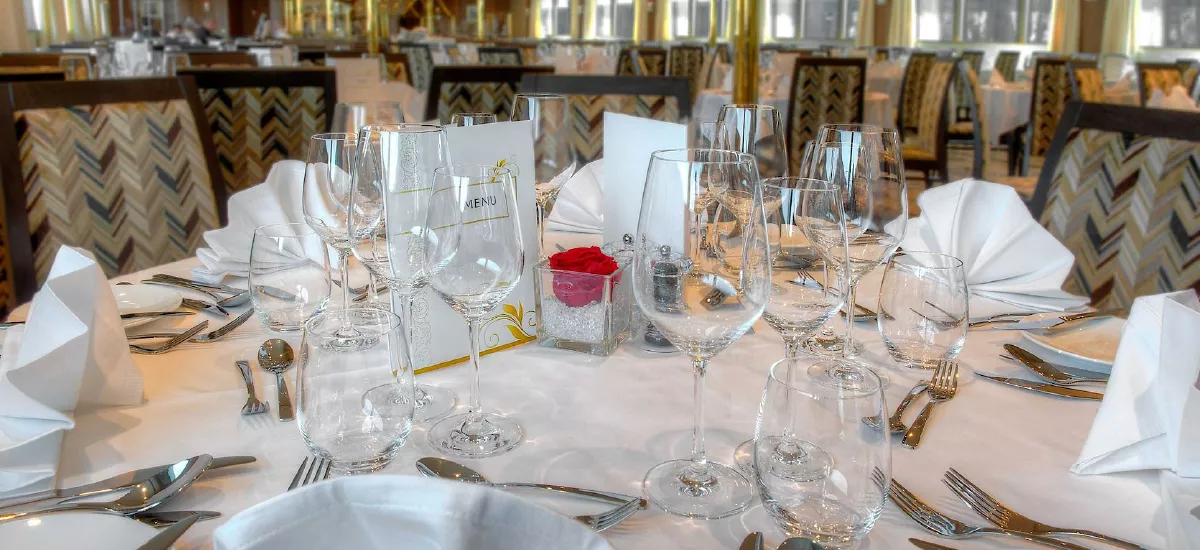 Zahlreiche Mitarbeiter in Küche und Restaurant sorgen täglich für Ihr leibliches Wohl an Bord. Genussvolle Menüs durch fest eingespielte Küchenteams werden für Sie zubereitet."Essen, was das Herz begehrt" - Zahlreiche Mahlzeiten von früh bis spät - einschließlich Nachmittags-Kaffeezeit, Kapitänsempfang und Kapitäns-Dinner mit festlichem Menü. Essen ohne eng gefasste Essenszeiten immer in einer Tischzeit! Auf Wunsch servieren wir Ihnen auch Gerichte für spezielle Diäten (Diabetiker, Glutenfrei, Laktosefrei, Vegan etc.)