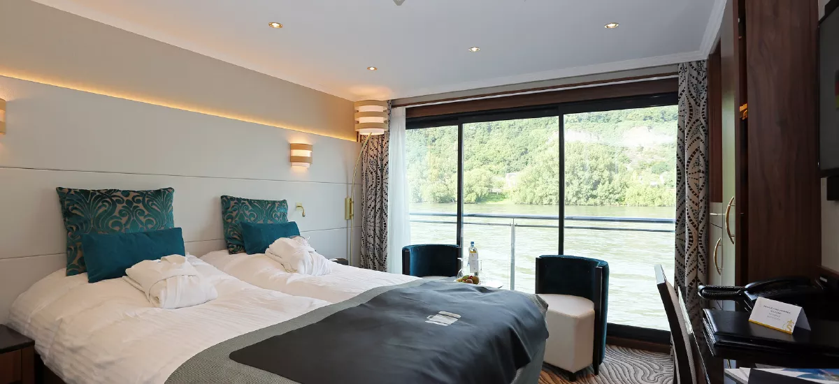 Alle Kabinen liegen außen, sind sehr komfortabel und luxuriös ausgestattet. Auf dem Orion- und Saturndeck mit französischem Balkon. Auf dem Neptundeck mit kleinen Fenstern (nicht zu öffnen).